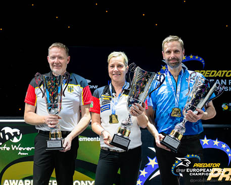 THE 8-BALL ACTION concluded on Monday night in Assen as Finland won one, and Germany claimed two golds at the PREDATOR EUROPEAN SENIORS CHAMPIONSHIPS. Yvonne Ullmann-Hybler, Martin Steinlage and Valtteri Virtanen were the triumphant gold medallists, all adding to their tally this week.