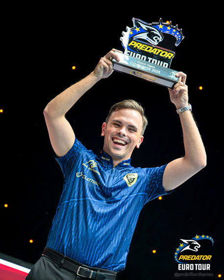 THERE’S ANOTHER POLISH champion on the block as 20-year-old Dominic Jastrzab defeated Germany’s Tobias Bongers 11-9 to lift the PREDATOR DUTCH OPEN title in a nerve-wracking final that could have gone either way. Taking place at the De Bonte Weever Hotel in Assen, Netherlands, the final was broadcast on Viaplay throughout the Netherlands as well as globally on the Predator Pro Billiard Series YouTube platform.