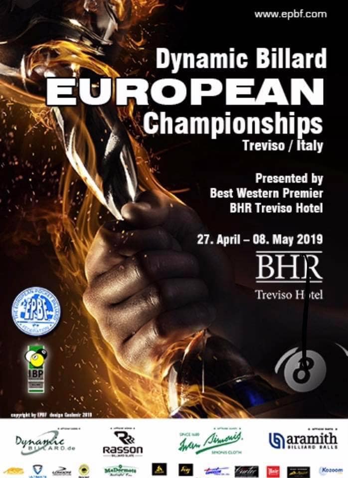 After the conclusion of the European Championships, from May 9th through 11th, the Dynamic Billard Treviso Open for men & women and the Predator Treviso Open for women will be staged. All matches of those events will also be available for LIVE watching via the stream.