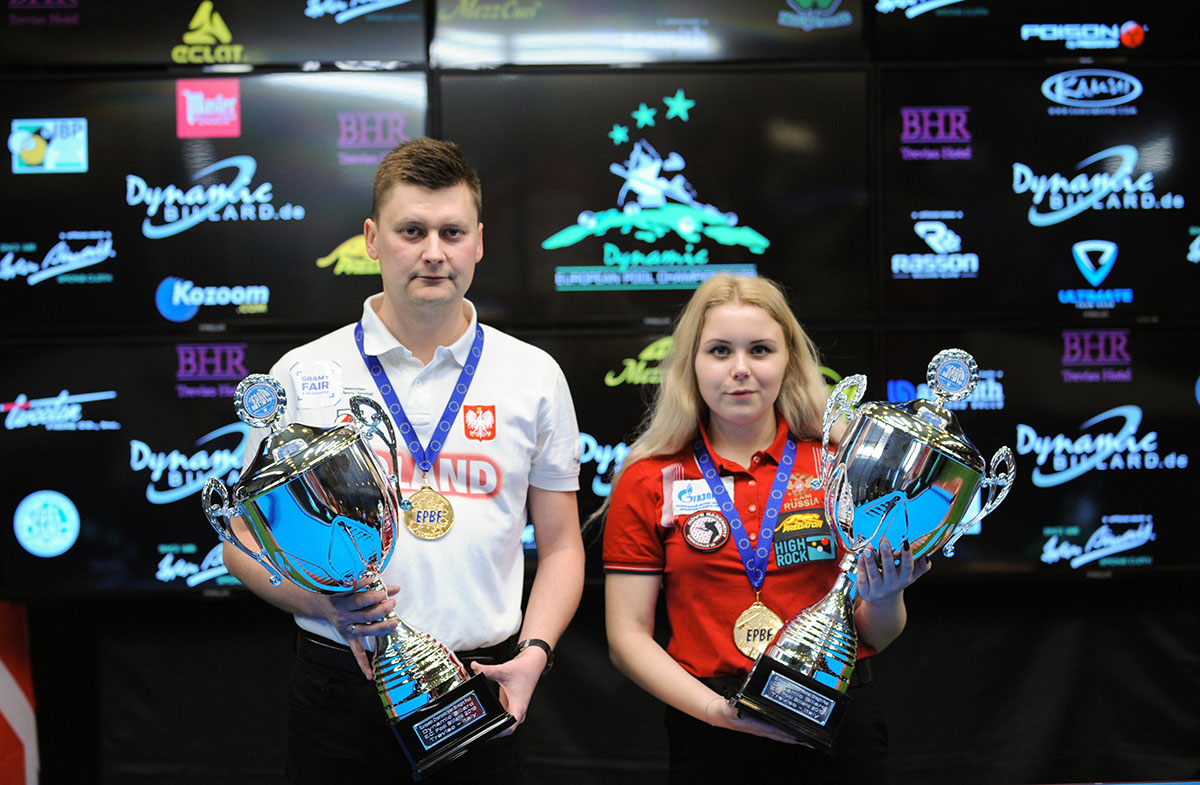 Russia & Poland start the Dynamic billard European championships with gold medals in the straightpool discipline which came to an end tonight in Treviso Italy. Kristina Tkach was the star of the Russian team here in Treviso, making up for last year’s disappointment of silver with an emphatic win over Tamara Peeters-Rademakers (NED) in the final. After the 2018 title holder Austria’s Jasmin Ouschan went out earlier today, it was a great chance for Kristina to claim her second women’s straightpool gold in the last three years.