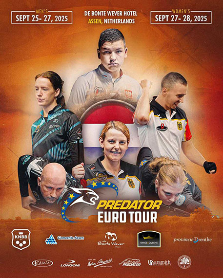 The PREDATOR DUTCH WOMEN’S OPEN gets underway on Saturday, concluding Sunday and on Tuesday 30th September, the annual PREDATOR EUROPEAN SENIORS POOL CHAMPIONSHIPS, organised by the European Pocket Billiard Federation starts. Running for nine days, the Seniors features three categories – plus-45s, plus-55s and ladies competing across four disciplines.