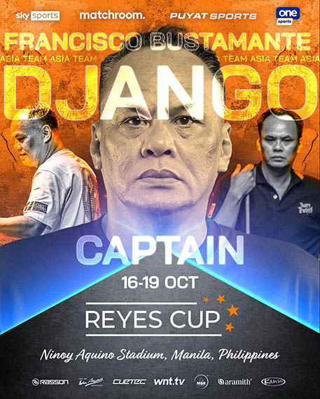 Francisco ‘Django’ Bustamante and Jeremy Jones have been confirmed as the non-playing captains for the second edition of the Reyes Cup, set for October 16–19 at the Ninoy Aquino Stadium in Manila.